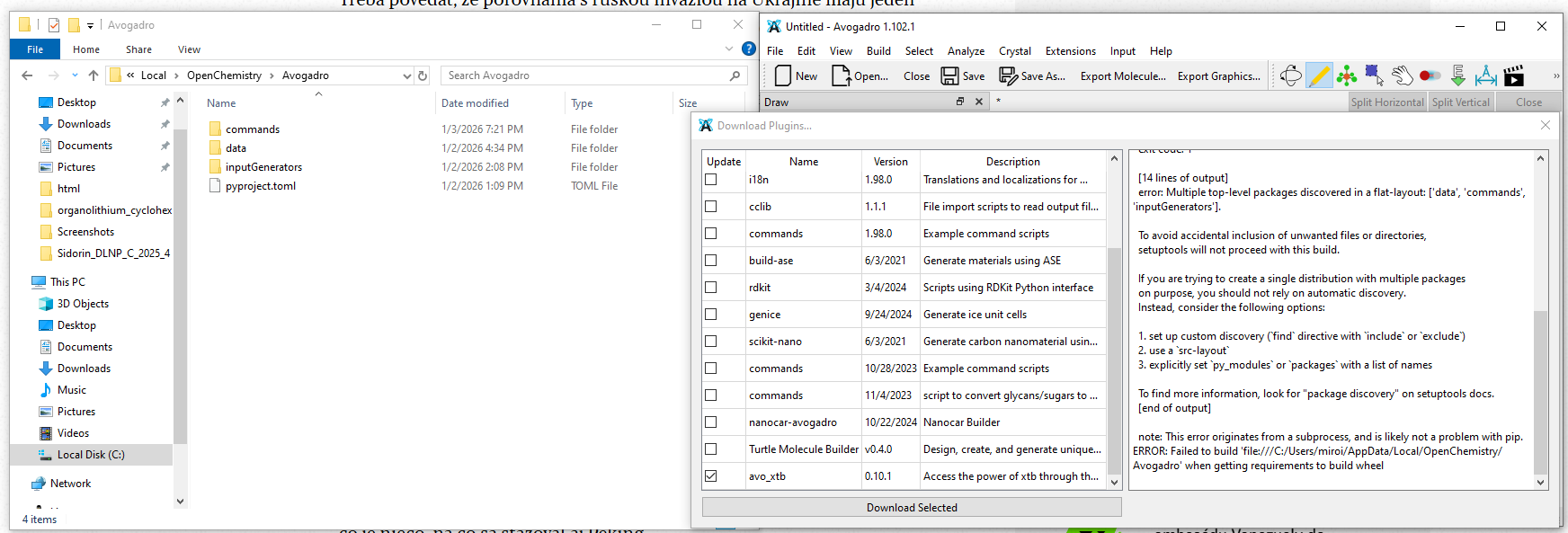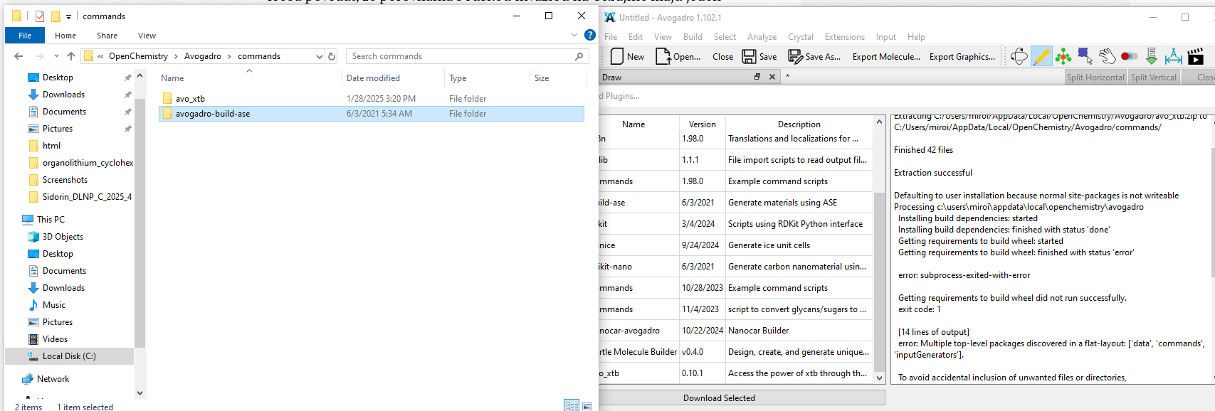 ERROR: Failed to build 'file:///C:/Users/miroi/AppData/Local/OpenChemistry/Avogadro' when getting requirements to build wheel