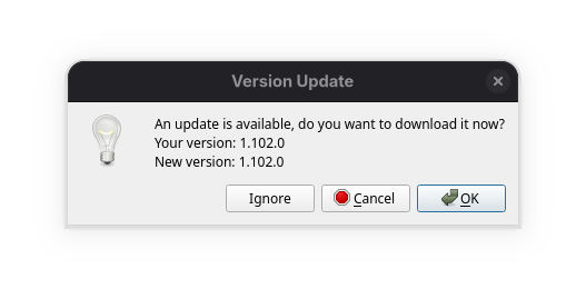 Thanks for the bug report. I’m aware of the “update available” bug. We’ll release 1 1.102.1 to fix that one. (@matterhorn103 has suggested turning it off for Linux)