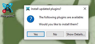 I installed Avogadro2 in my Windows 10 and a popup shows and asks for a plugin installation. I clicked yes an no repeatedly but neither opened the software. Help plzz. How do I make this work