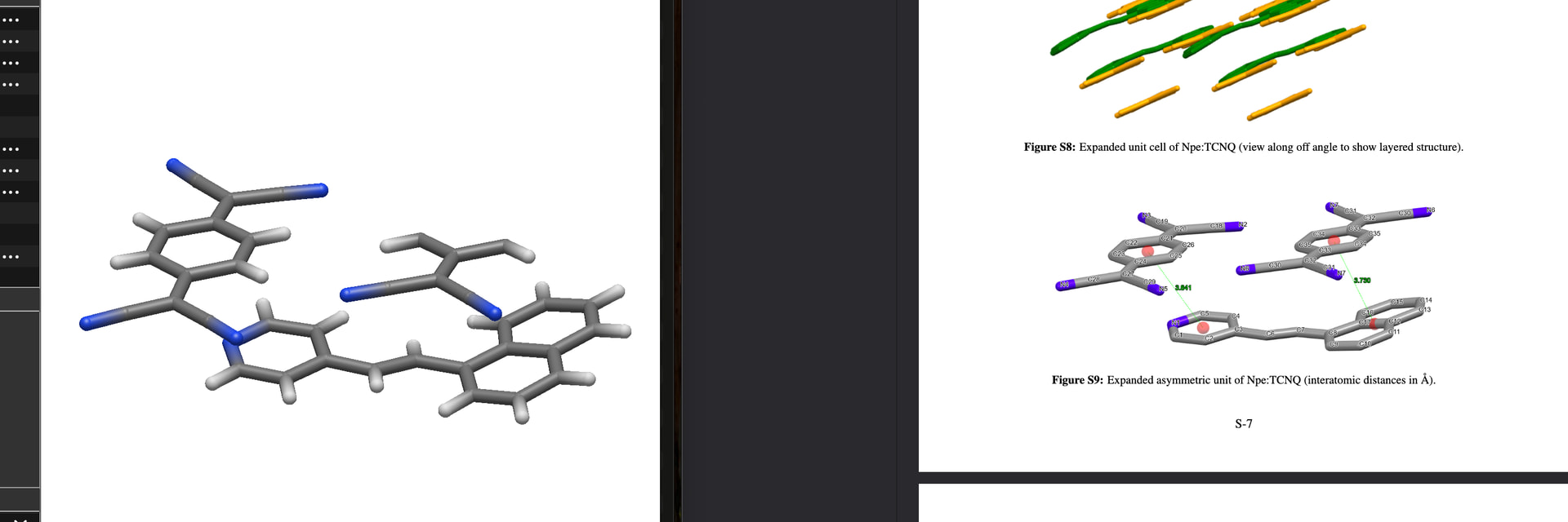 Thus, reading a .cif by a non-crystallographic software can be misleading. Thus e.g., one TCNQ molecule (your second post, left hand illustration) appears «still incomplete». Equally note: a .cif file may, but _need not_define bonds, types of bonds, or bond order as you would find e.g., in the bond block of a .sdf file. If authors do so (e.g., small molecule crystallography/chemical crystallography), they do with a particular syntax managed by the IUCr, for instance with _chemical_conn_bond_type (record)