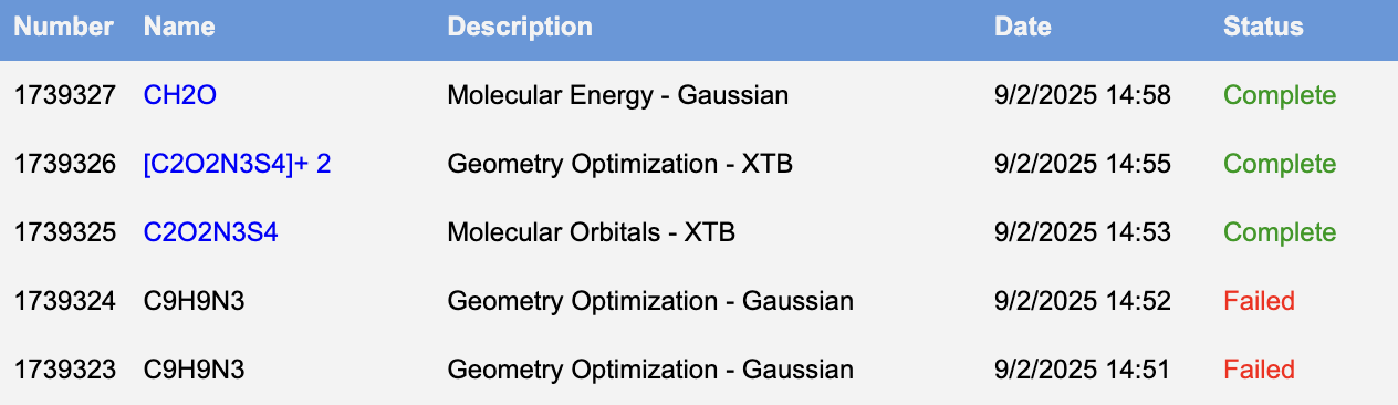 ["Molecular Energy - Gaussian", "Geometry Optimization - XTB", ...],