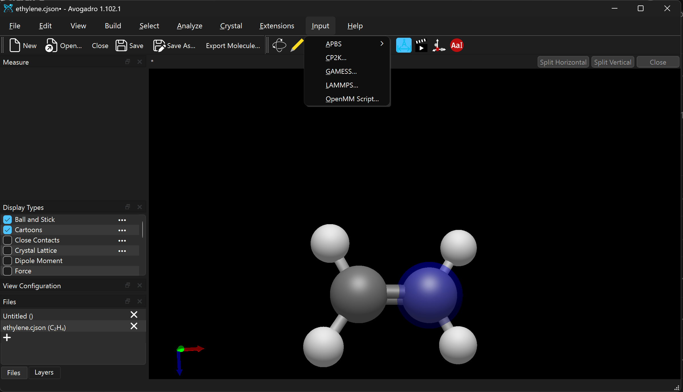 Available options only include APBS, CP2K, GAMESS, LAMMPS, or OpenMM Script.